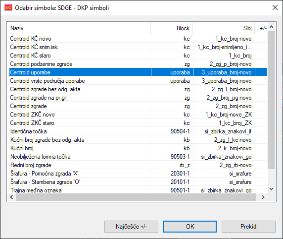 Unos centroida uporabe vrši se naredbom Simboli i automatski izvršava nekoliko radnji.