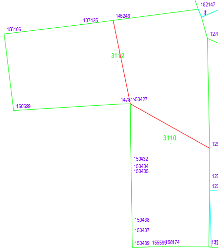 Postupak će biti objašnjen na izmišljenom primjer podjele dvije postojeće čestice (3112 i 3110) u tri nove čestice: