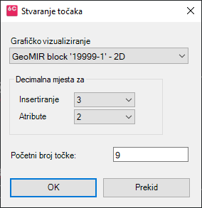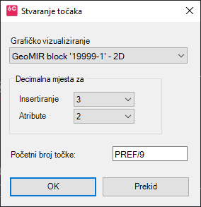 - Insertiranje - na koliko decimalnih mjesta će biti zaokružene koordinate za insertiranje bloka