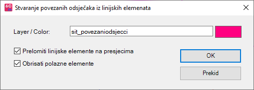 Ukoliko je ova opcija uključena, linije koje se presjecaju će biti prelomljene - postupak je u GIS terminologiji poznat pod nazivom "Noding" .