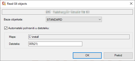 - Datoteka: naziv preuzet iz GeoMIR6 postavke "Datoteke / Zadani naziv datoteke".