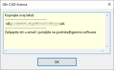 Softver preuzima podatke hardverskog USB ključa, stvara šifru zahtjeva i prikazuje formular sa svim potrebnim podacima. Tekst iz žutog polja potrebno je poslati na navedenu Email adresu: