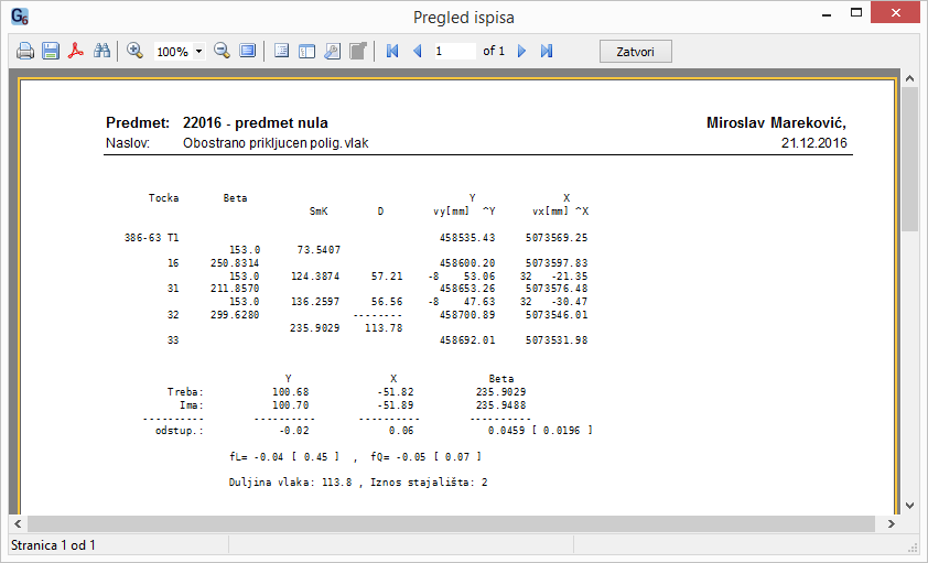Rezultati računanja te razna protokoliranja ispisuju se u izvještaje, koji se po potrebi pohranjuju u bazu podataka. Svaki izvještaj je unaprijed pripremljen te izgled i format nije promijenjiv.