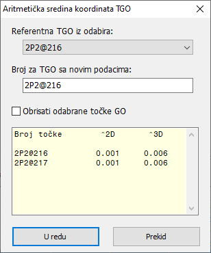 Računanje aritmetičke sredine odabranih točaka - pogodno ako su koordinate točaka istog broja učitane prenumeracijom.